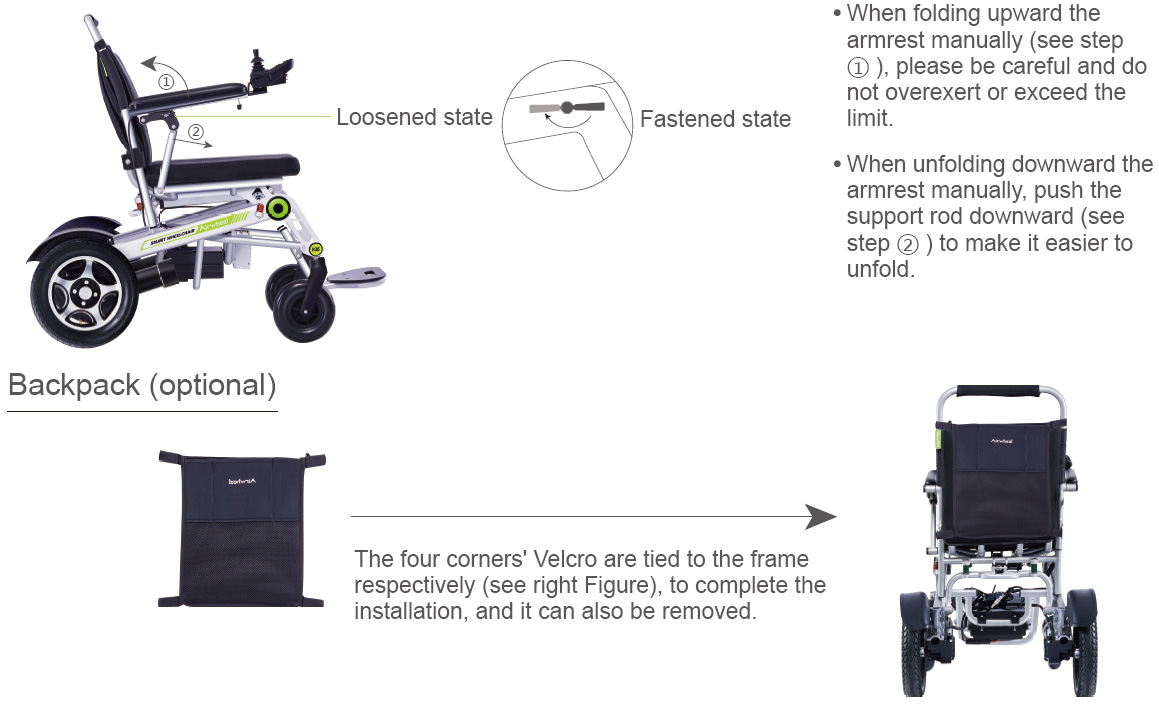 1.Take out the accessory box at the rear of the wheelchair
