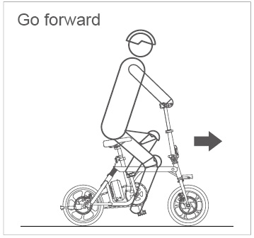 Set right the head, fold kickstand and fasten frame. Adjust bike head and saddle position to ensure a comfortable riding experience. Find the power switch in the one side of the battery, start it and hold the handle. First sit on the saddle and step on the pedals one foot by one foot. Rides can pedal it to go forward.